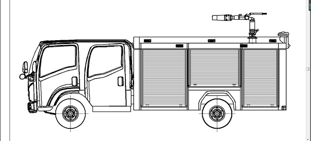 总体布置 | 整车由消防员乘员室和车身两大部分组成,车身布置采用内藏罐式结构,左右两侧为器材箱,中部为水罐,器材箱后部为泵房。 |
