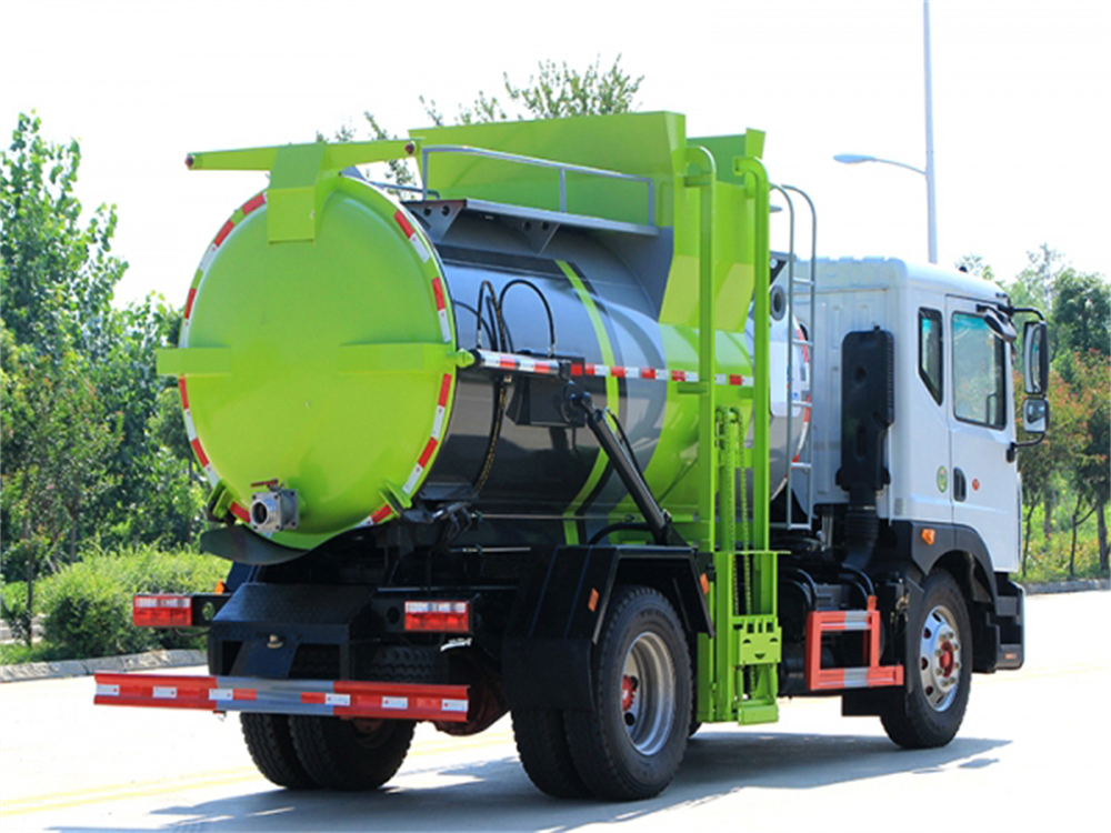 罐体采用优质碳钢板材,罐体内部带固液分离功能(全推推板,不锈钢泔水分离网板),罐内加热功能(用于严寒地带防止罐内餐饮垃圾冻结凝固,采用柴油燃烧机加热,加热速度快效果好,可设置高低温实现自动温控)全液压操作系统,工作人员操作方便,罐体举升自卸,拉杆式挂桶提升机,可以挂120/240升垃圾桶进行作业,后盖液压驱动开启、锁紧,方便人员操作。