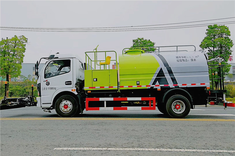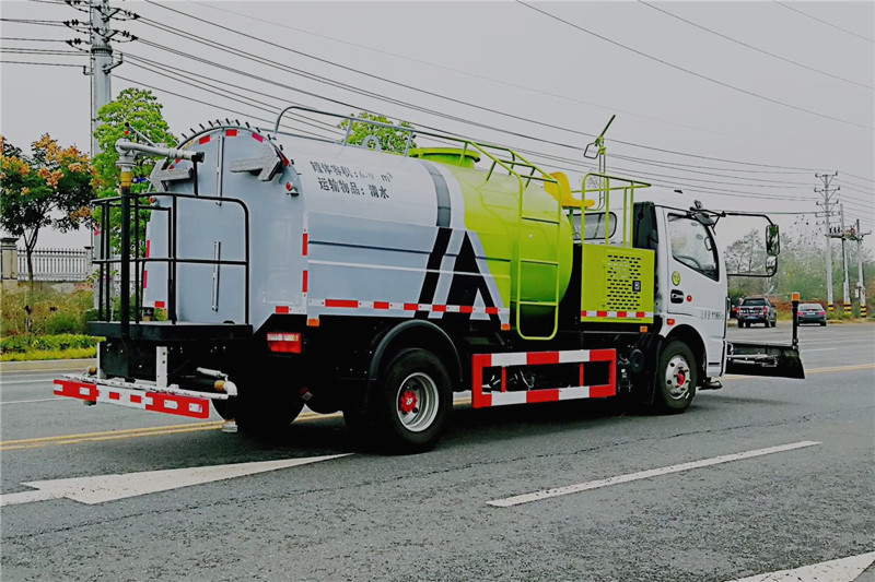 东风多利卡高压清洗车是一种双发动机、双水泵清洗车,是在标准二类底盘的基础上,加装高压冲洗系统、低压冲洗系统,由机械、液压(气路)、电器三部分合为一体的专用冲洗作业车。本车具有独立的高、低压两套水路系统,为清洗车工作提供压力水源。其工作原理是:利用高压水泵产生的高压水,经喷水架的高压喷嘴喷出,利用高压水流的动能,以高压力、低流量的方式进行清洗,强力去污,高效节水,能将路面的陈旧污渍清洗干净;或高压水经左(右)角喷喷出,清洗路缘、人行道及护栏隔离区;使用高压喷枪还可清洗路标、广告牌、高架路等;喷雾系统具有强大的喷雾降尘、喷撒空气消毒剂及调节空气湿度功能。