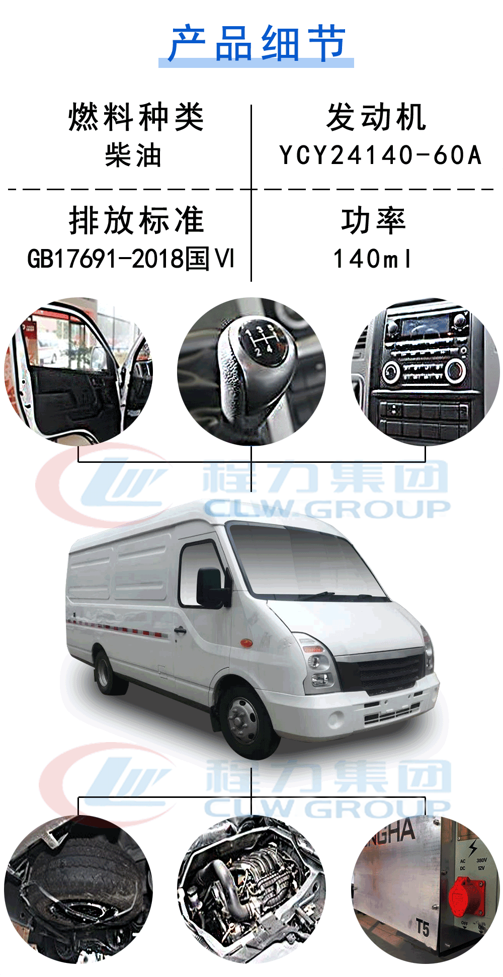 | 其他 | 该车配备隔热结构的车厢和制冷装置,用于冷藏运输;ABS生产企业:广州瑞立科密汽车电子股份有限公司;型号:CM4XL-4S/4M,CM-ESC CM4XL-4S/4M,CM4YL;YCY24140-60A发动机最大净功率为99kW,对应油耗值为10.69(L/100km);选装后门样式;在最后排座位的后方安装具有足够强度的板式隔离装置;车厢顶部封闭,不可开启. | ||